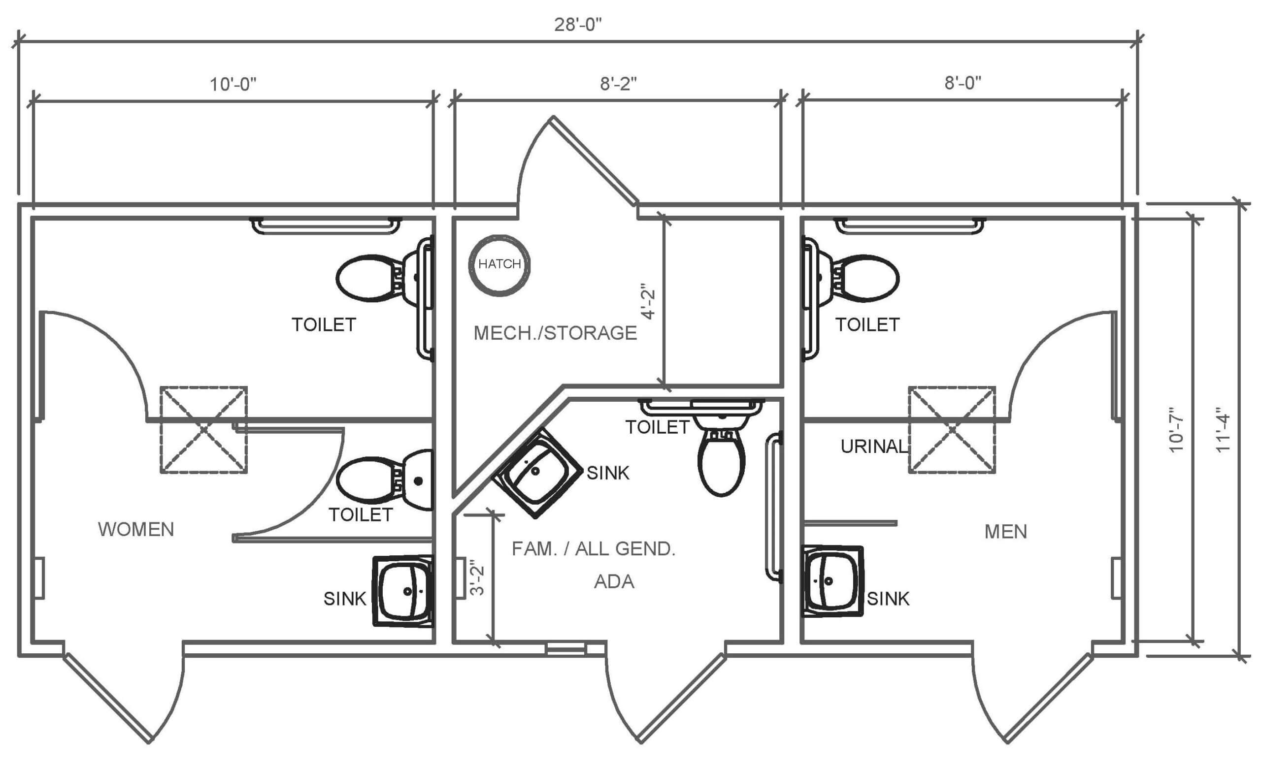 The Keystone is an excellent option for a high-traffic area with the lowest cost-per-visitor of our standard models. The all-user restroom cabin provides valuable versatility helping cut down the lines on the men’s or women’s sides should there be an imbalance in demand. The all-user cabin also provides more privacy for visitors that need it, such as young families and people with caretakers. The Keystone can operate with flush toilets and sinks even without any connection to utilities such as sewer, water, and power.