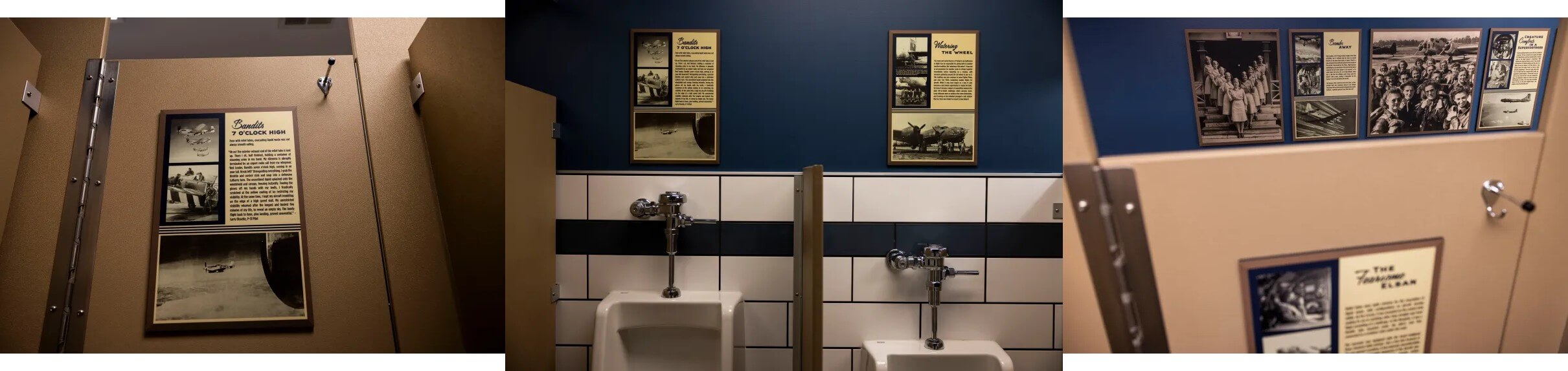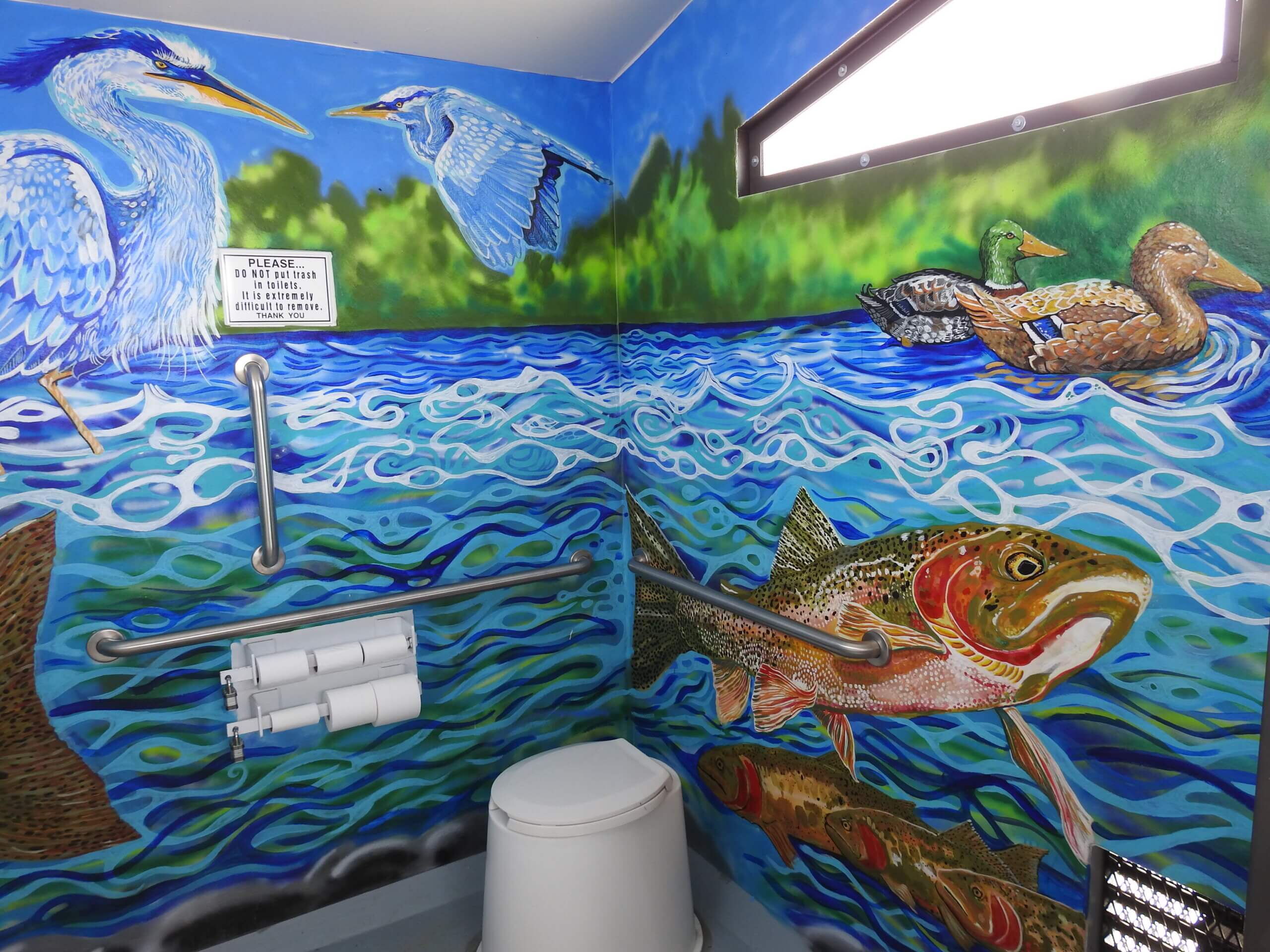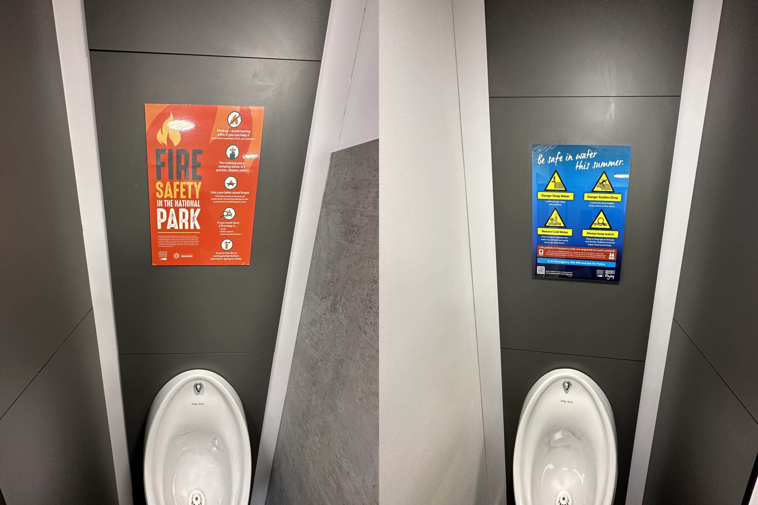 Any place where people wait is going to create a “sellers’ market” for attention. Whether it’s the line at the concession stand, or the bench at the side of a trail. And then you have the prime real estate of all captive audience areas, the restroom. No other captive audience location will have higher traffic, and less to look at. Here are some examples of things to use in these ‘captive’ spaces: